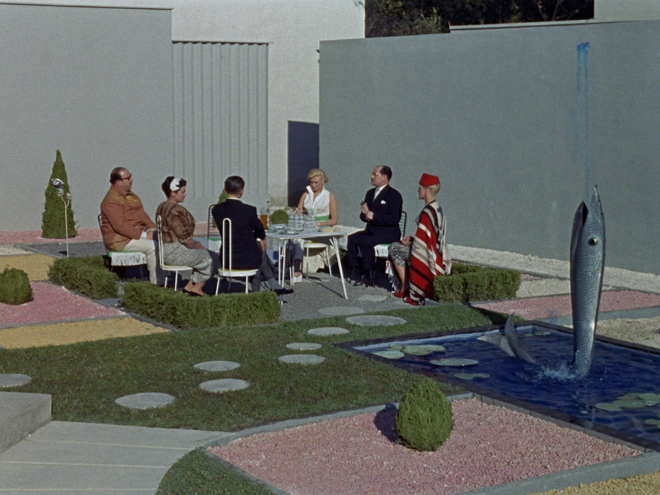 Man kan virkelig mærke, hvordan Tati har frydet sig, mens han har fundet på disse gags, der gør grin med modernismen i en grad, så parasollen er på størrelse med en paraply, stolene er så smart designet, at de er uegnede til at sidde på, og så er der fiskespringvandet, der kun tændes, når familien får er "fint" besøg. Og således kommer der også en overklasse/underklasse-problematik indover. Tati lader bestemt ikke lader denne løbende joke gå til spilde.